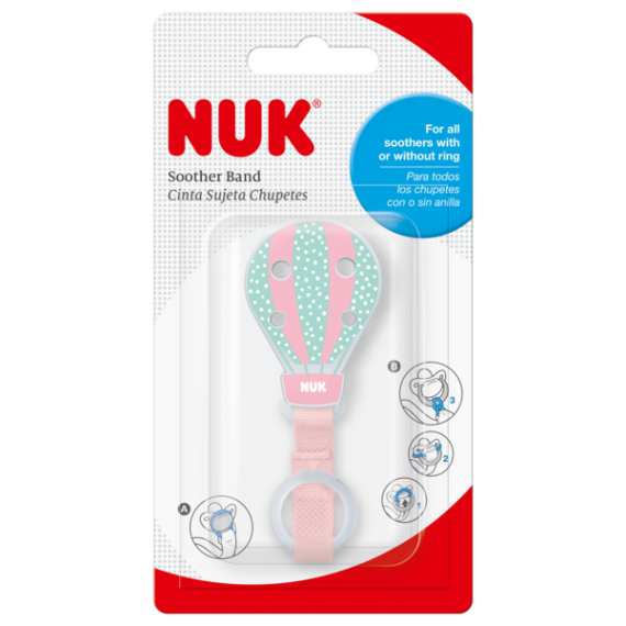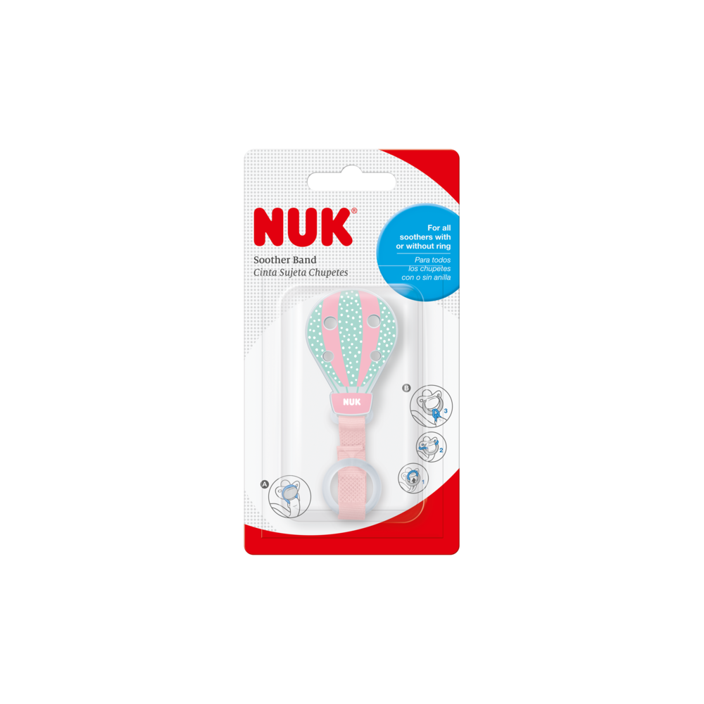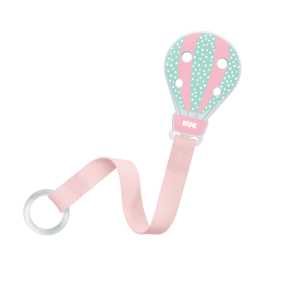 NUK Smokkholder for smokker med eller uten ring. Forebygg at barnets smokk havner på bakken eller mistes med en smart smokkeholder. Fest med klips, enkelt og lett med en hånd.