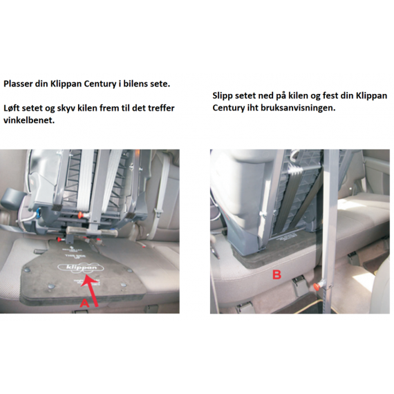 Helningskil/Height Adjuster til Klippan Century og Opti. Brukes i biler hvor bilsetet er flatt, slik at bilsetet får for mye helning. Kilen korrigerer -12 grader