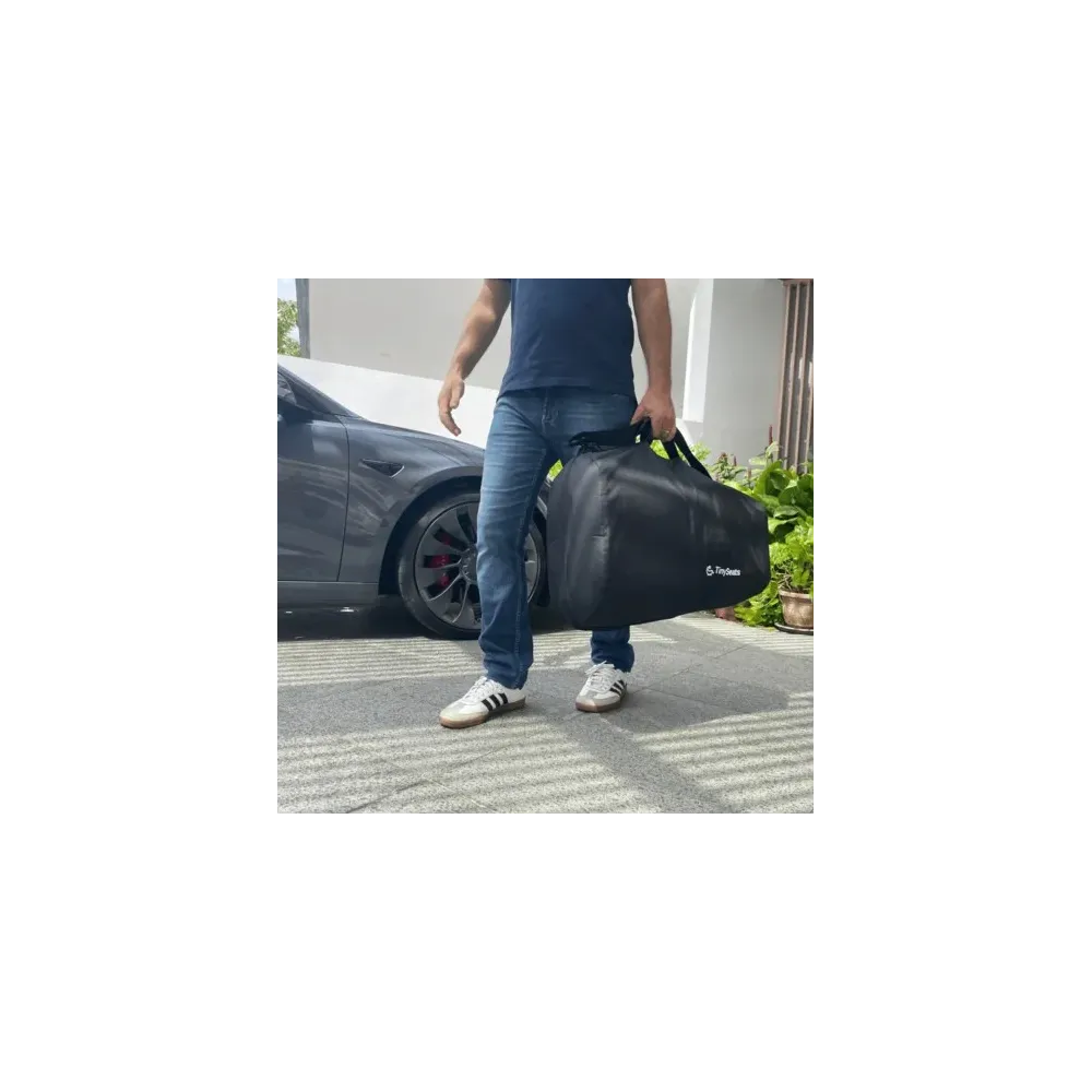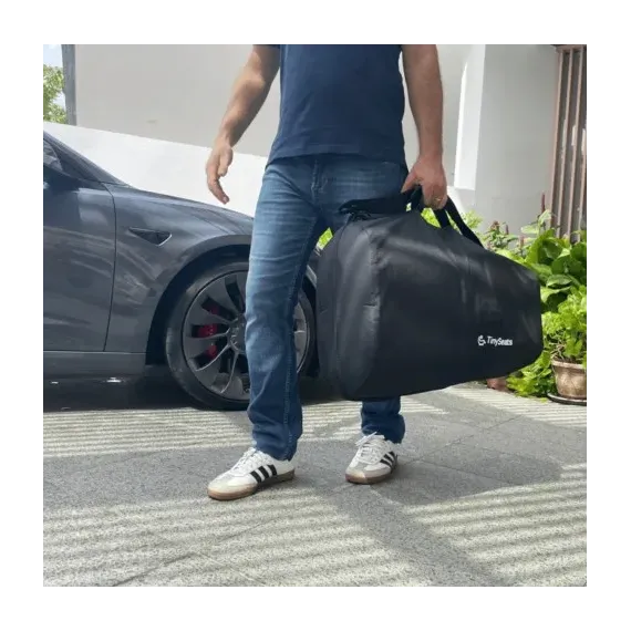 Vennligst merk at denne vesken ikke er beregnet for innsjekket bagasje i fly, og til det formålet bør dere vurdere å vente på en større, polstret koffert for TinySeats Two, som kommer på nyåret.