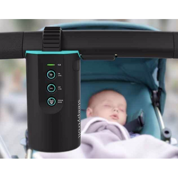Sleepytroll har innebygd lyd- og bevegelsessensorer som forsiktig starter å vugge barnevognen når lyd eller bevegelser blir registrert.