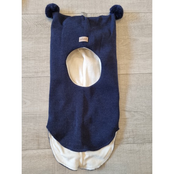 Kjempefin lue fra Kivat med dusker og skinnlapp. Luen har vindstopper på ørene og pannen. Utsiden av luen består av ull mens innsiden er foret med ubleket økologisk bomull.