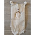 Kjempefin lue fra Kivat med dusker og skinnlapp. Luen har vindstopper på ørene og pannen. Utsiden av luen består av ull mens innsiden er foret med ubleket økologisk bomull.