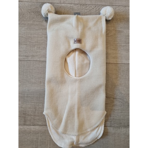 Kjempefin lue fra Kivat med dusker og skinnlapp. Luen har vindstopper på ørene og pannen. Utsiden av luen består av ull mens innsiden er foret med ubleket økologisk bomull. Kivat er kjent for sine luer i god kvalitet...