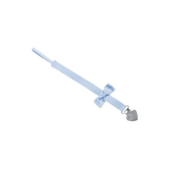Nydelig håndlaget smokkesnor fra Prinsessefin. Smokkelenken er laget av vevet silkebånd og pyntet med en sløyfe. Smokkesnoren har en hjerteformet klips, som du kan feste til barnets klær eller et annet sted der du ønsker at smokken skal festes. Metallet i klipset er nikkelfritt. Dette er en fin barselgave, dåpsgave eller gave til babyshower.
