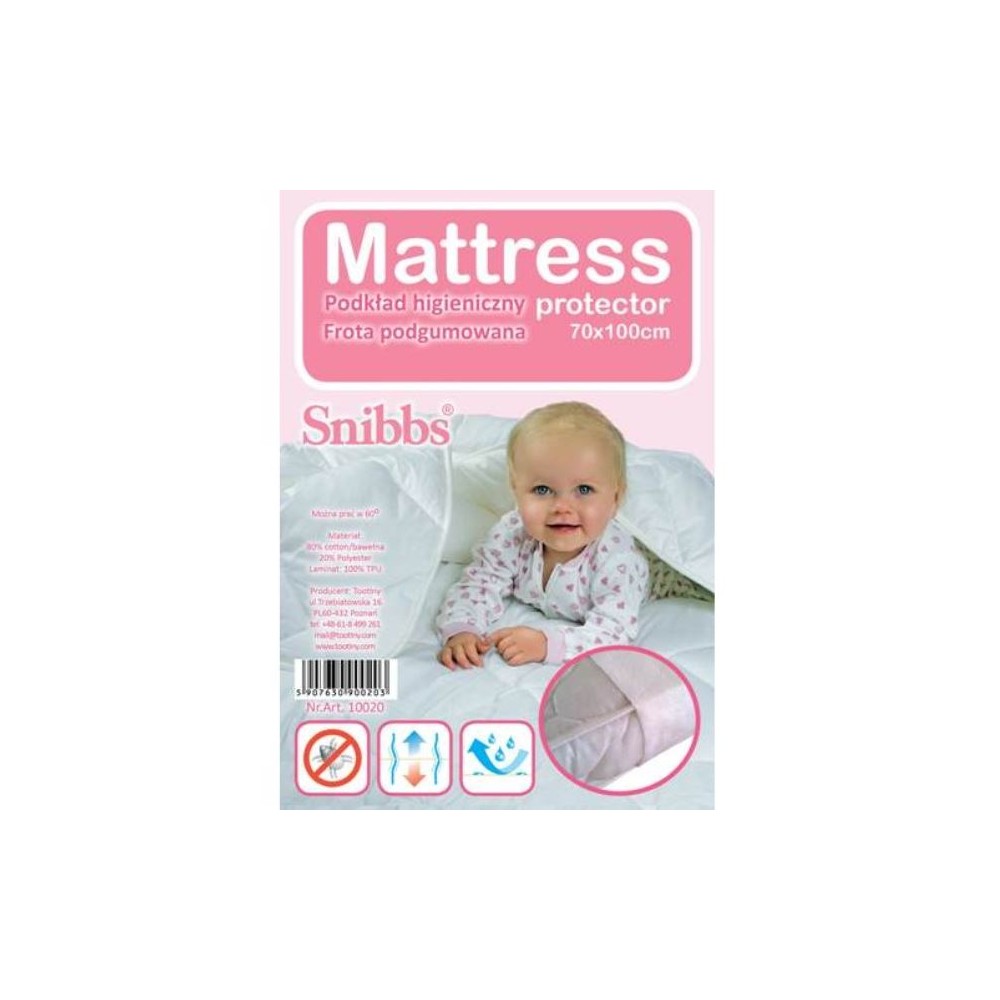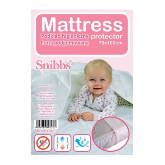 Beskytt og bevar madrassen med Snibbs tisselaken. Lakenet er vanntett, men pustende. Oversiden er i bomullsfrottè, mens undersiden er vanntett. Festes med strikk under hvert hjørne Barnet blir ikke klam eller våt av...