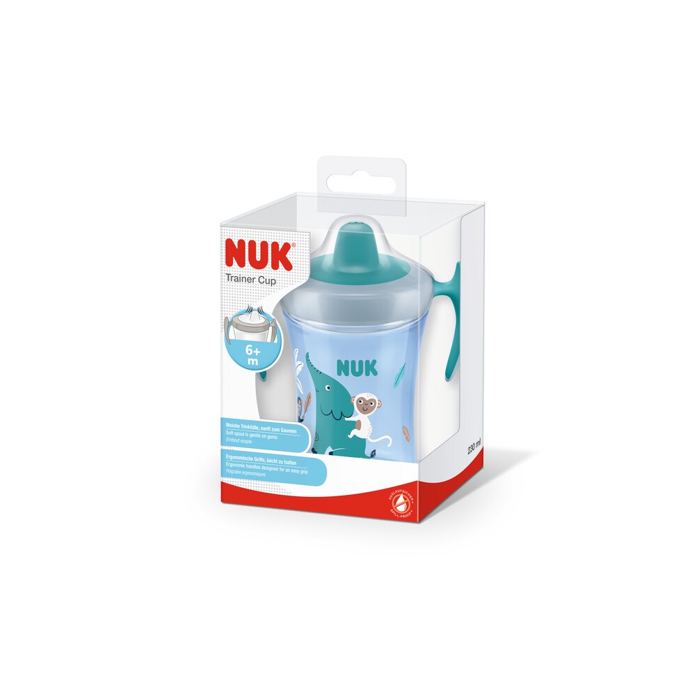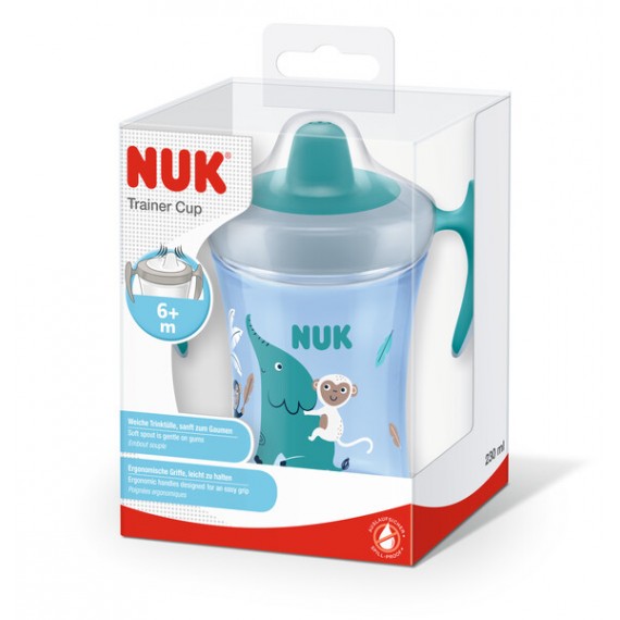 NUK Evolution Trainer Cup er en tutekopp fra NUK. Tutekopen har en myk TPE tut og rommer 230ml. Den er sølefri, har ergonomiske håndtak og kan brukes fra ca. 6 måneders alder. De ergonomiske håndtakene er framstilt for å passe barnets små hender. Koppen tåler å vaskes i oppvaskmaskin og er lett å dele og rengjøre.