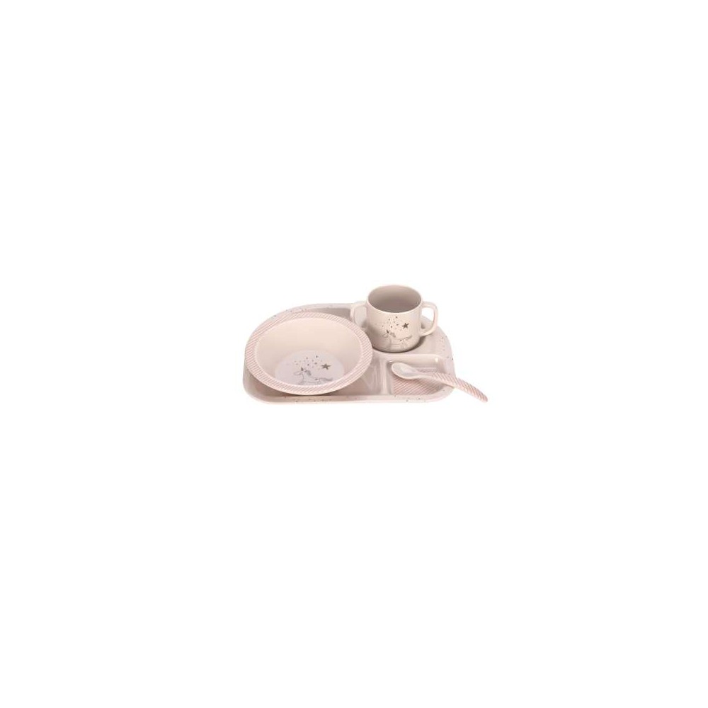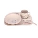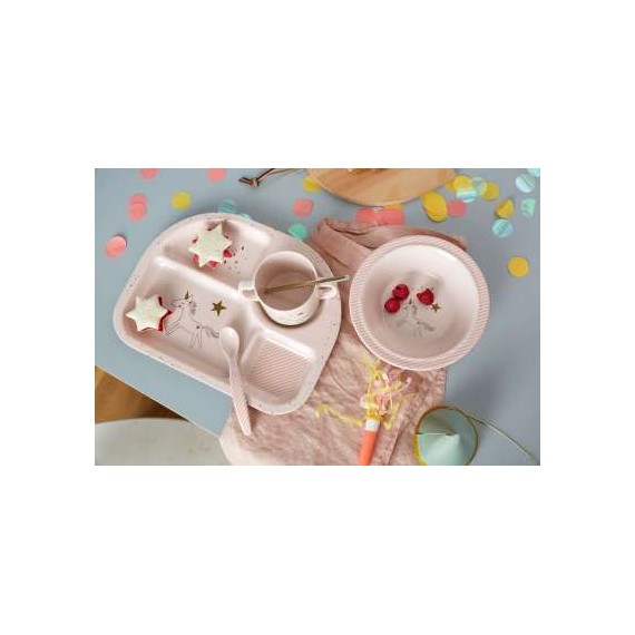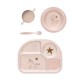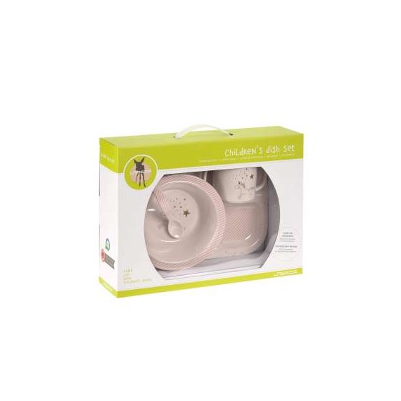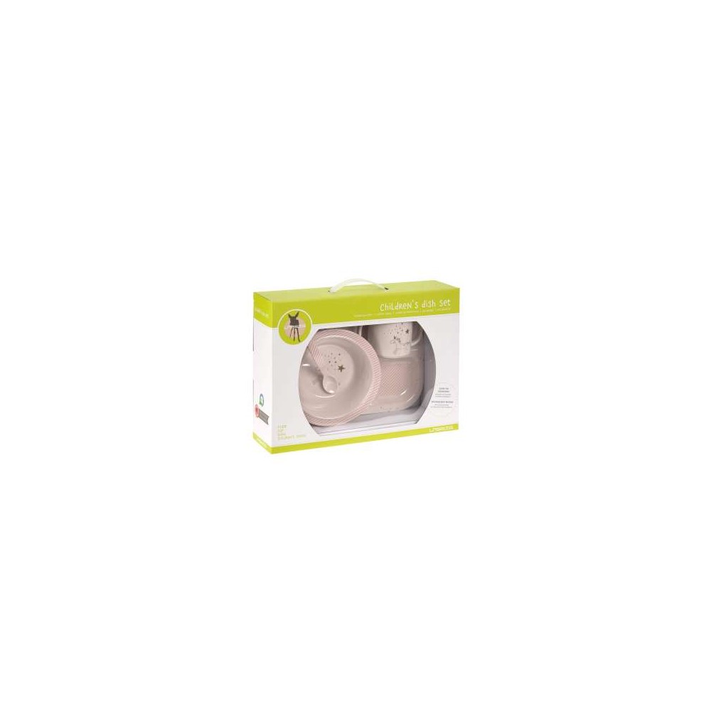 Undersiden av den dype tallerkenen og koppen har anti-skli i silikon. Melamin spisesett er lett, stabilt og kan vaskes i oppvaskmaskinen. Passer for barn fra 6 mnd