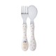 Bestikksett med gaffel og skje. Settet er laget av rustfritt stål med plasthåndtak.