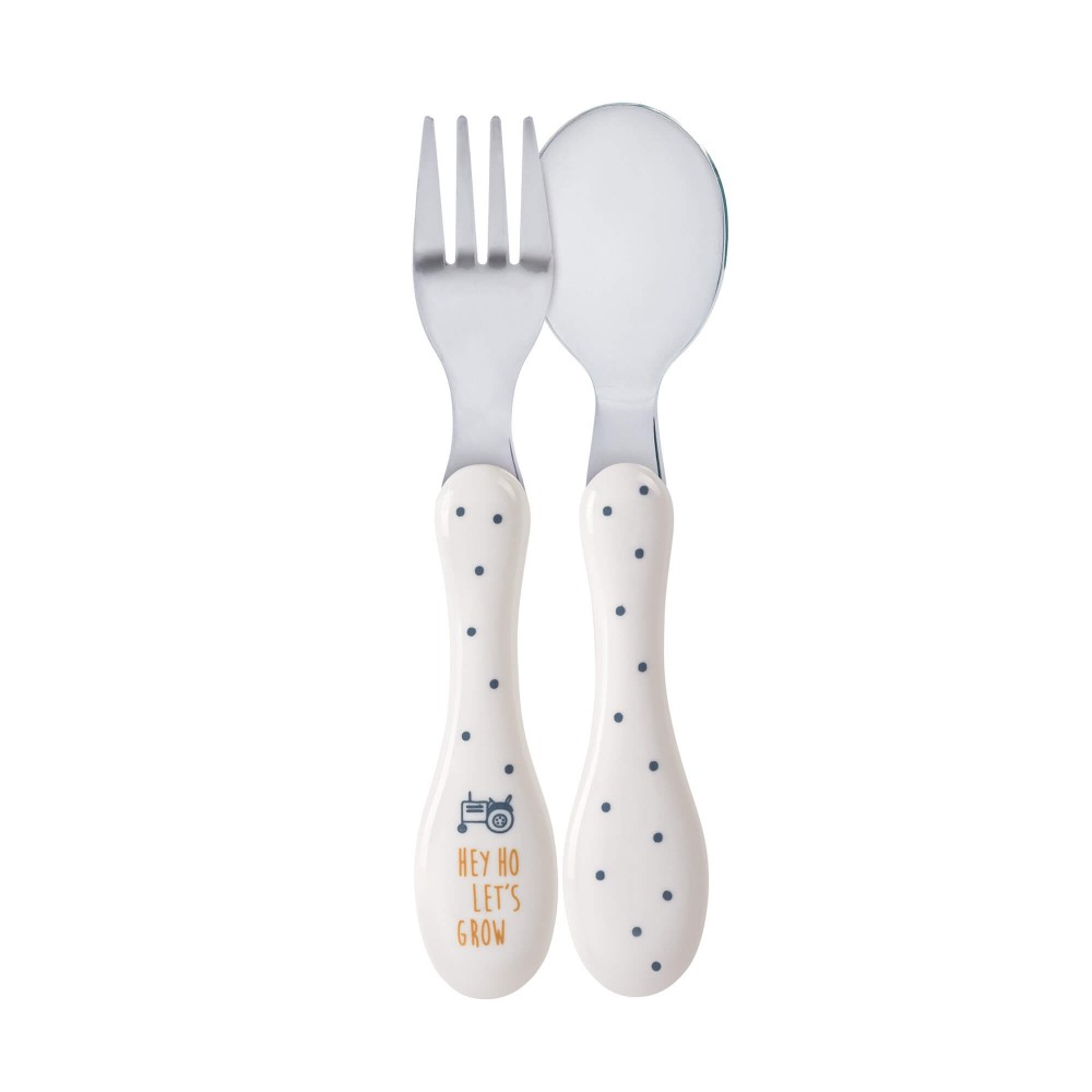 Bestikk i rustfritt stål med den søte traktoren fra Garden Explorer-samlingen gjør det veldig morsomt for barn å mate seg selv. Bestikket er lett, stabilt og tåler oppvaskmaskin.