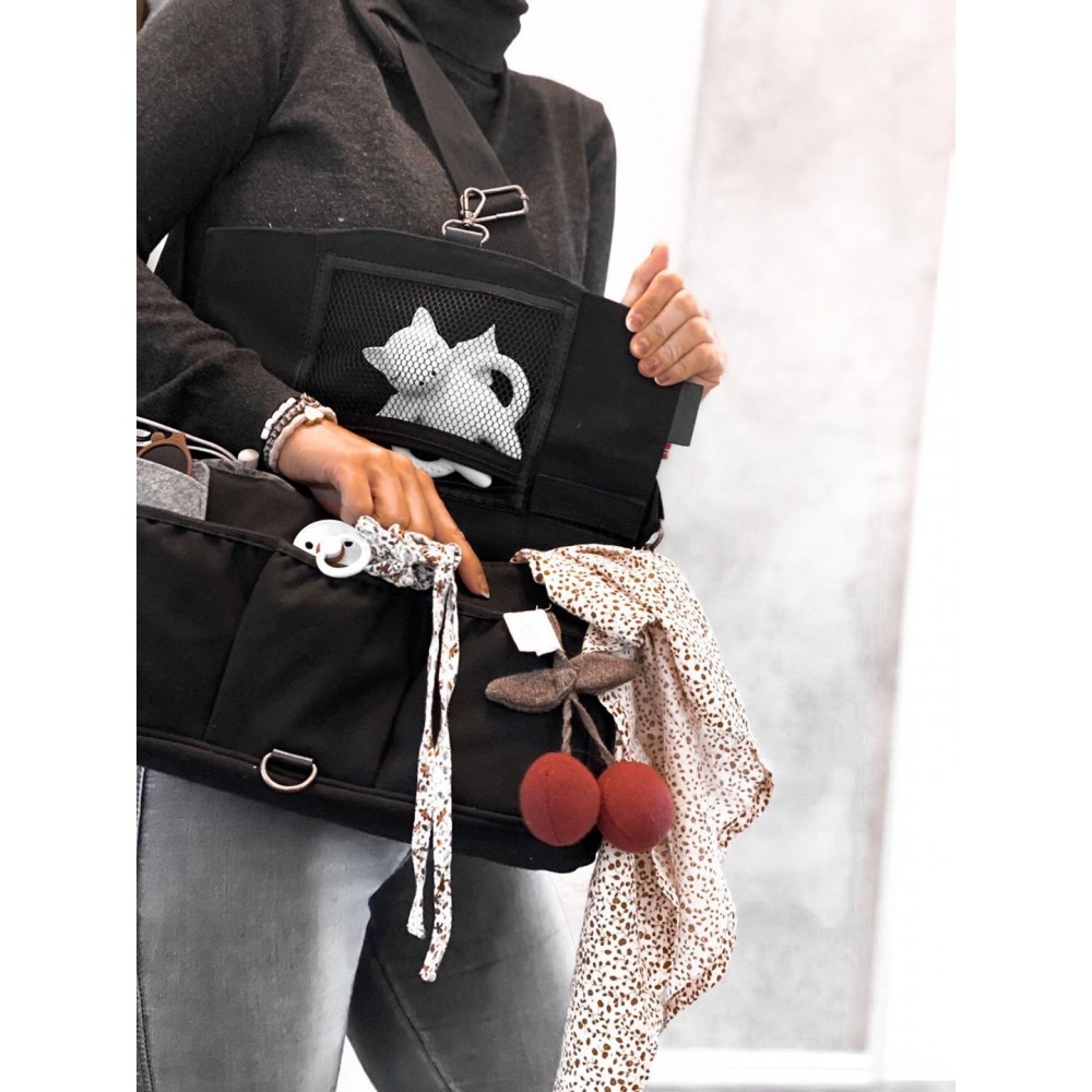 De justerbare veggene festes enkelt med borrelås slik du ønsker å ha de. Lag store lommer for klær og bleier, eller mindre lommer for smokker, nøkler eller mobil. Tilpasses helt etter dine ønsker og behov. Har også flere små lommer på utsiden under lokket, og en lomme med glidelås på baksiden. Organizeren er super når du ikke trenger å ha med en stor stelleveske lengre, eller når du skal på kortere turer. Spesielt praktisk med skulderrem som kan strammes eller tas ut til en lang rem.