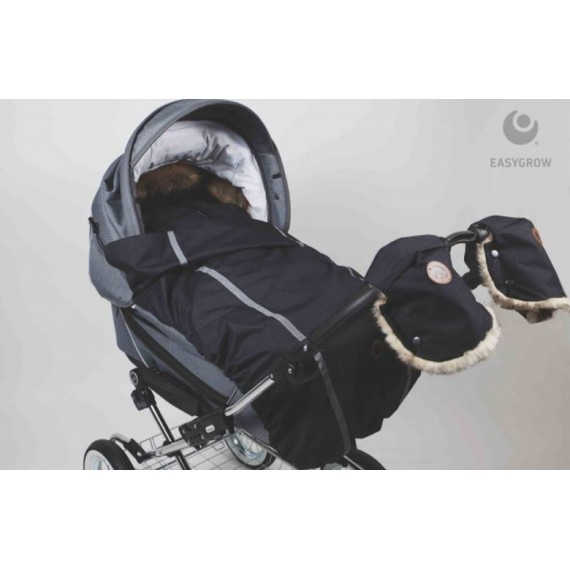 Herlige Håndmuffer i samme tekstiler som Easygrow vognposene slitesterk polyester, foret med kunstpels. Til kalde dager på trilletur. Håndmuffene kan kobles sammen slik at de kan brukes enkle eller doble.
