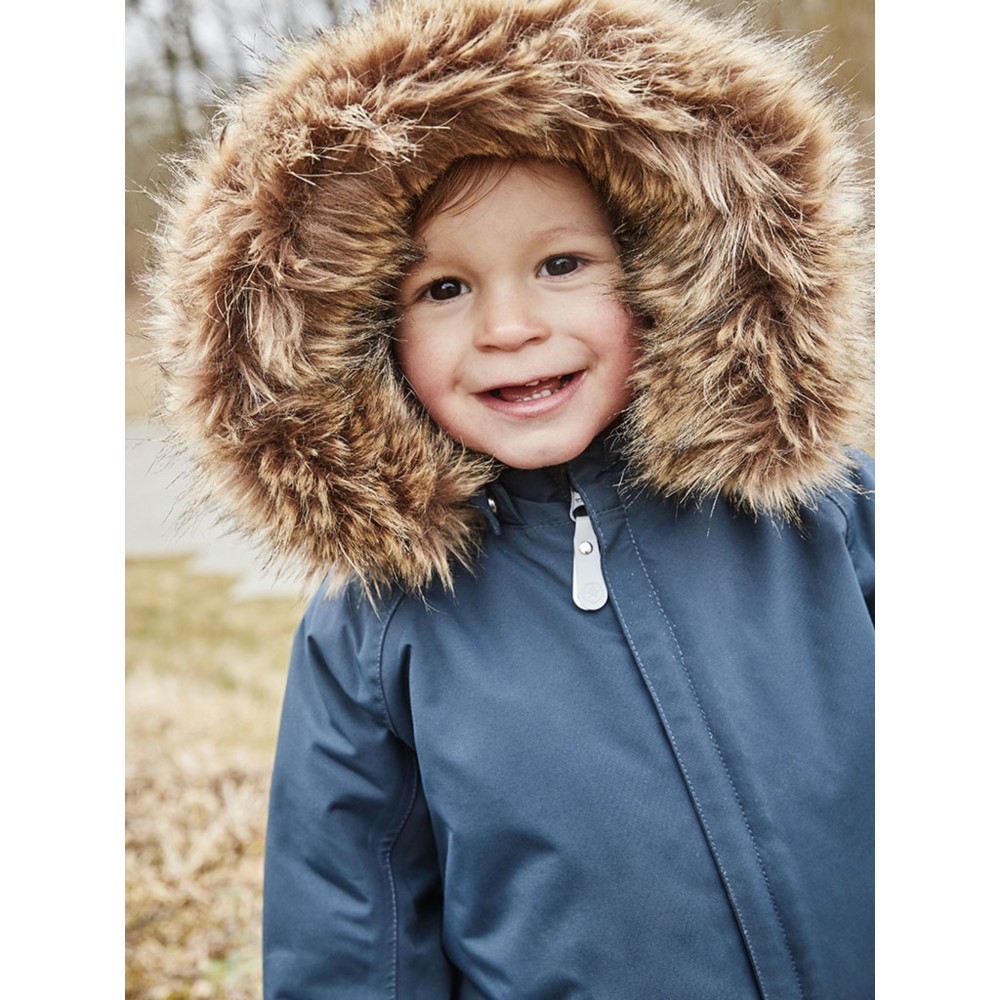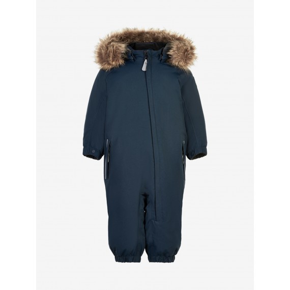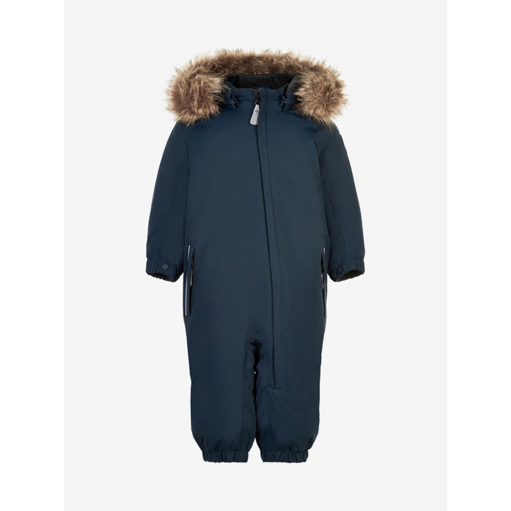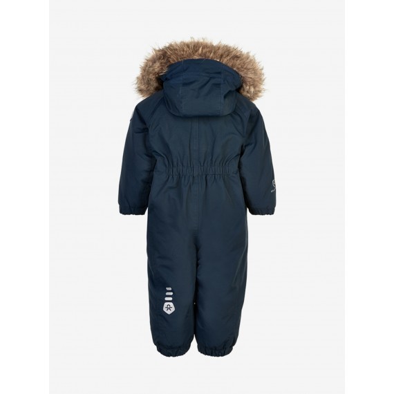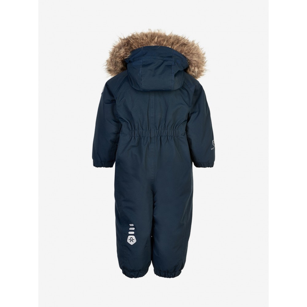 Superfin vinterdress fra Color Kids! Dressen har praktiske egenskaper som en lomme for heiskort på venstre erme, avtagbar hette med trykknapper og mykt fleecefôr samt justerbare støvelstropper, snøfanger i bukseben...
